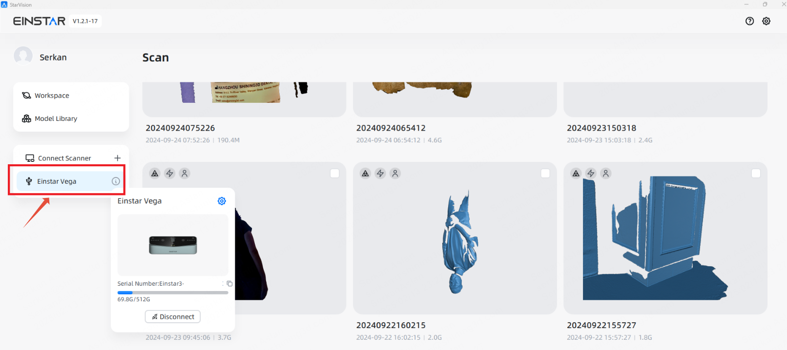 - The Einstar Vega scanner appears in StarVision software.